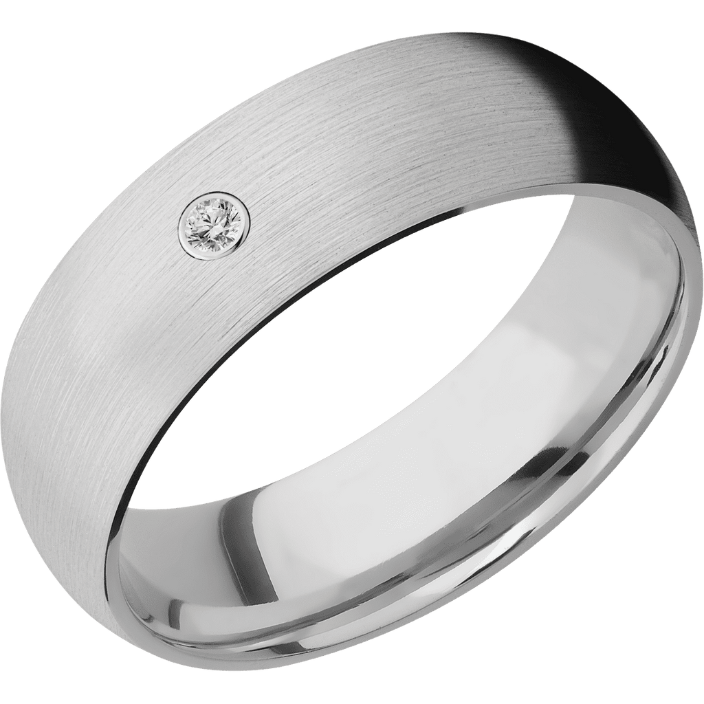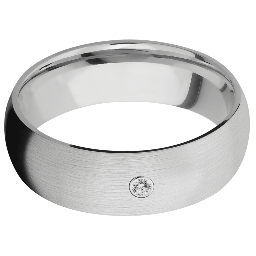 7 mm wide/Domed/14K White Gold band with an arrangement of 1, .03 carat Round Diamond (ST) stones in a Bezel setting.