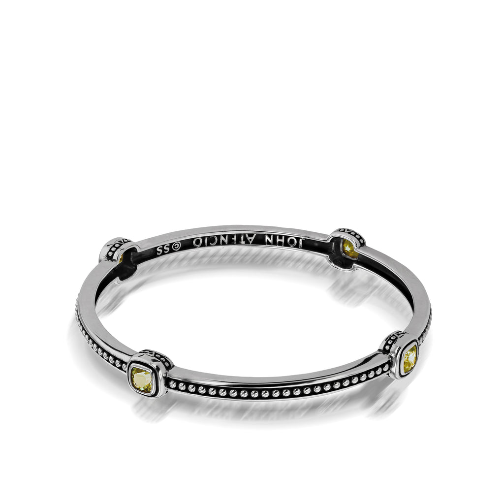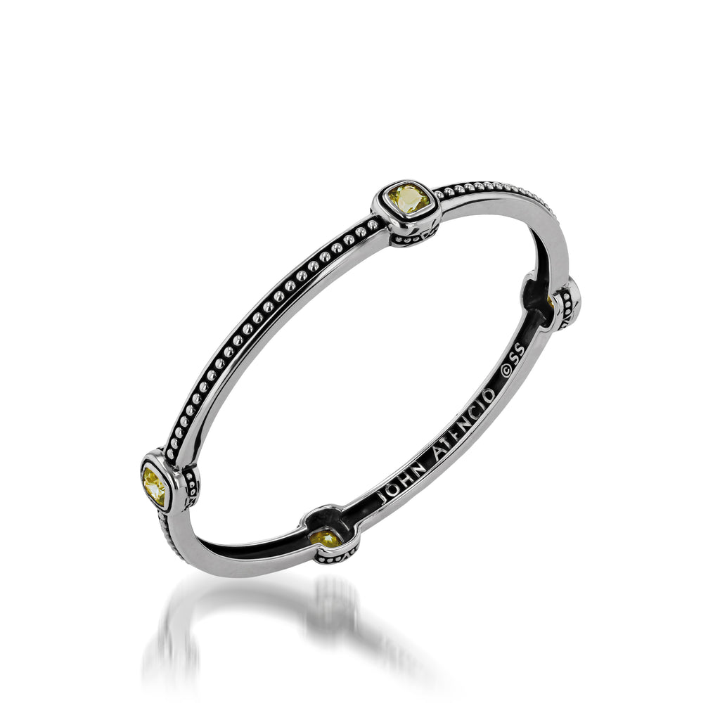 A melody of color and shape perfectly blend to create this bold and inspired sterling silver and 14 karat gold collection by John Atencio. Chorus blends uniquely faceted cushion-cut gemstones in rich colors with distinctive bracelet, ring, earring, and pendant designs for a bold and lasting statement.